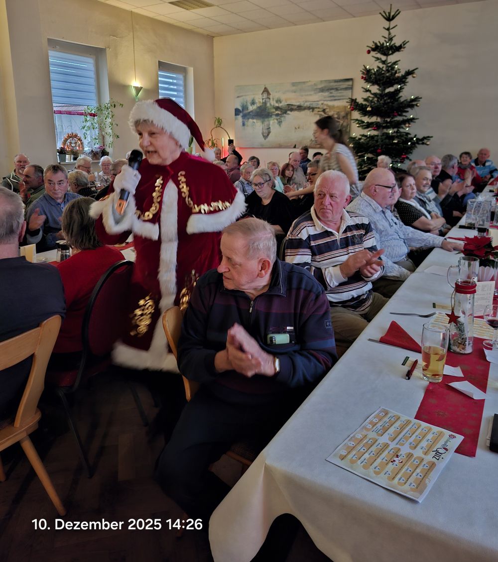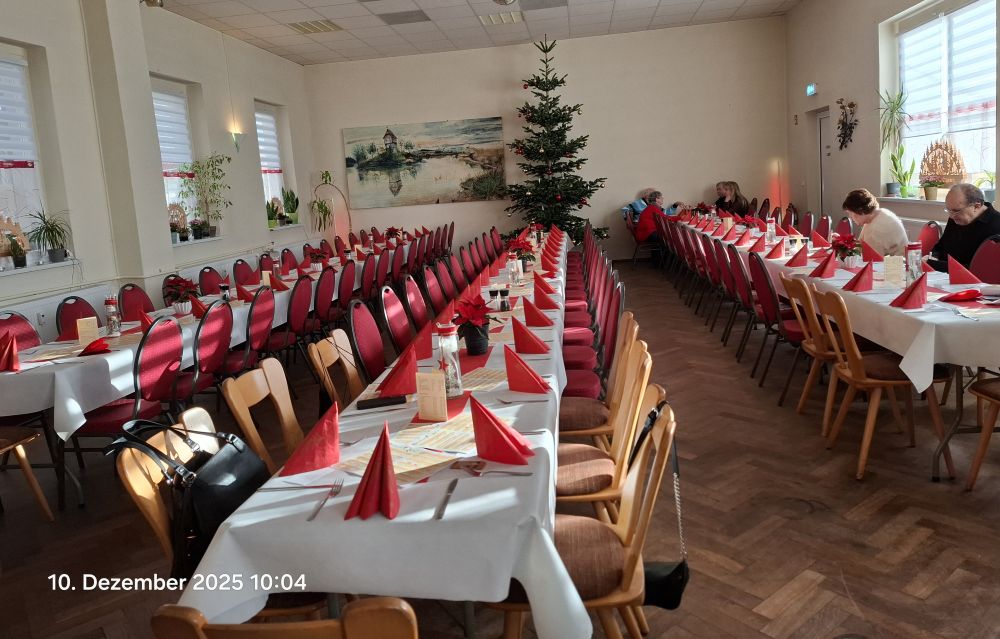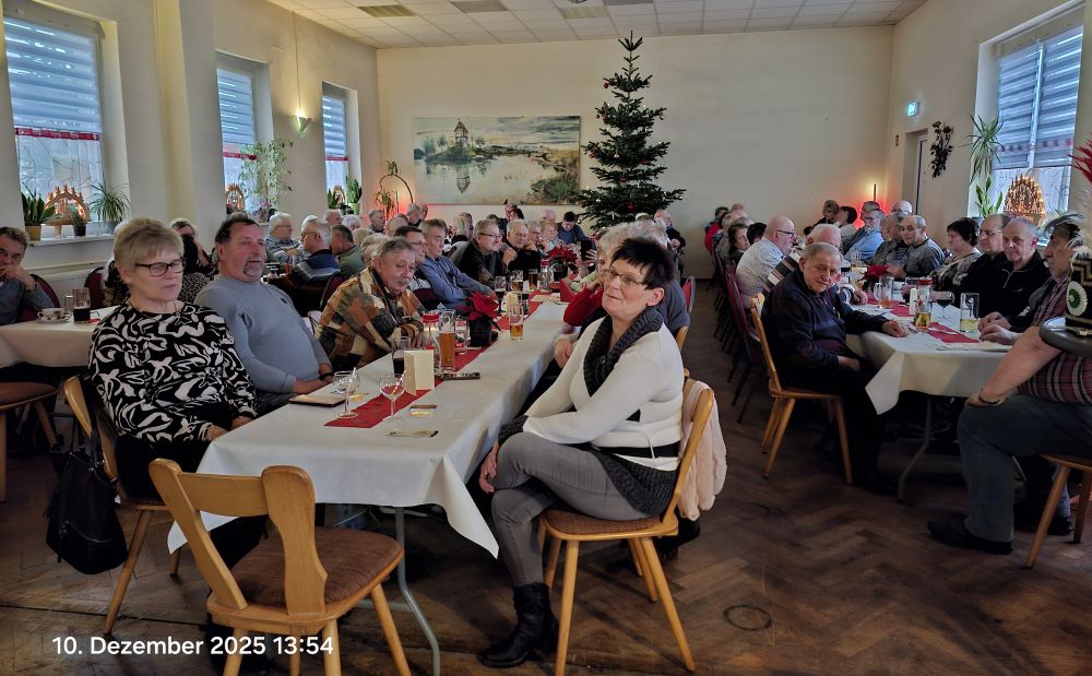 Am 10.12.2025 fand die Seniorenweihnachtsfeier des BV SWS wieder in Reinsdorf in der Gaststätte "Erholung" statt. Dieser langjährigen Tradition bei gemütlichen Beisammensein waren 84 Kolleginnen und Kollegen gefolgt.